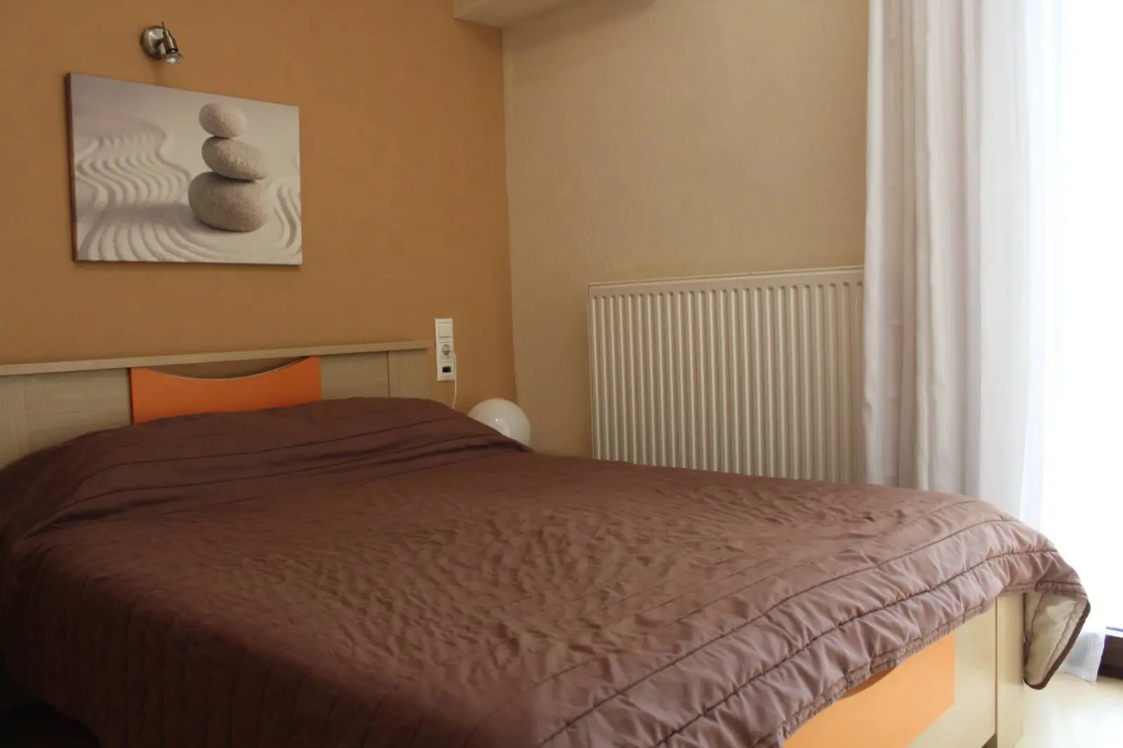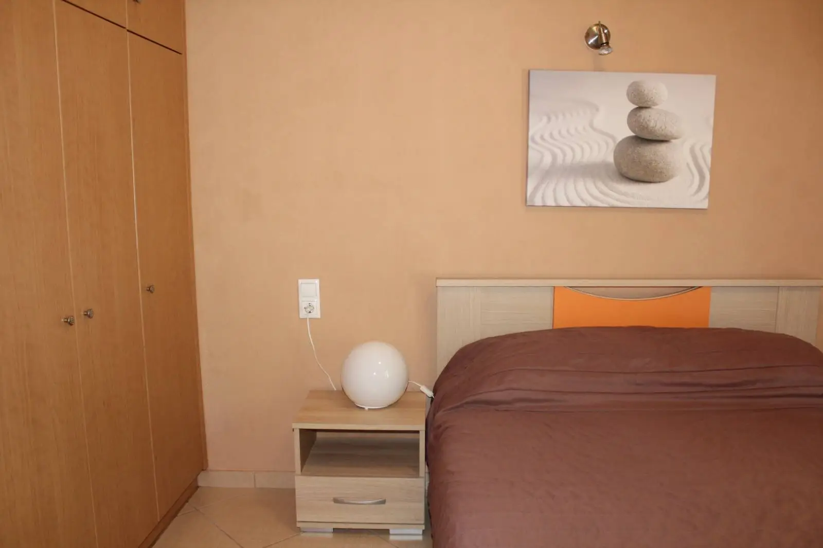 The separate bedroom includes a large double bed and a built-in four-door wardrobe, providing plenty of storage space. For your convenience, there is also an iron and ironing board.